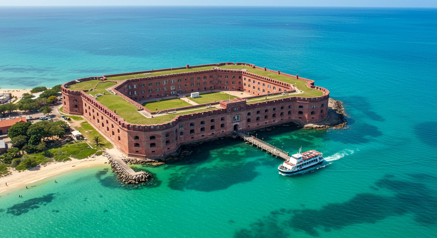 Far from the mainland's hustle, Dry Tortugas National Park is a blend of historical intrigue and natural splendor. Accessible only by boat or seaplane, this park offers stunning views of Fort Jefferson, a massive but unfinished coastal fortress. The contrast of the fort's stone walls against the sparkling Gulf of Mexico makes it a photographer's delight. Underwater, the coral reefs are a vibrant ecosystem perfect for snorkeling shots.