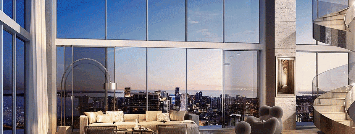 Our exclusive Penthouse Collection includes 24 spacious penthouses with 11-foot ceilings and 4 Upper Penthouses with 12-foot ceilings. Two of the Upper Penthouses enjoy a private rooftop terrace, each designed with a summer kitchen and spa tub, set against incredible views of the ocean and Miami’s Downtown skyline.