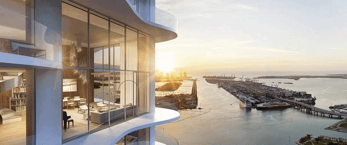 All residences feature two private elevators and a private vestibule. Elevators are equipped with biometric access control for enhanced security. Most units enjoy spacious pass-through layouts with soaring 10-foot ceilings and breathtaking views of Biscayne Bay, Miami’s downtown skyline, and stunning sunsets from the west.