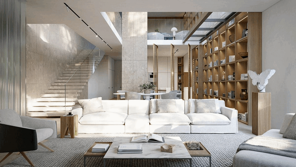 Surf Row Residences’ distinctive design reflects the innate beauty of the project’s natural setting. Warm, modern, and light-filled, the luxurious materials – utilized in grand yet proportional scale – evoke delight in their artistry. Weightlessly cantilevered floating stone slab stairs lead up to spacious bedrooms complemented by rift-sawn French Oak floors. A spa-inspired primary en suite bath boasts an oversized, freestanding tub and rain shower. Surf Row Residences’ signature design details are conceived for refined comfort and tranquility.